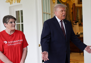 On Monday, a DoorDash driver wearing a T-shirt that read: "DoorDash Grandma" delivered McDonald's to President Trump at the White House. Video of Trump's encounter with