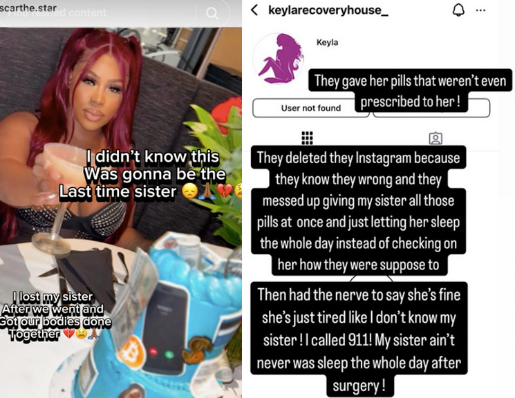 In a post on X, a friend tweeted: “YALL my bm sister died yesterday bc of a recovery home !!! she went to get a bbl and she was in pain right after her surgery and the recovery had gave her pills they had n she went to sleep and never woke up she was perfectly fine AFTER THEY KILLED HER !!! REPOST PLEASE.”