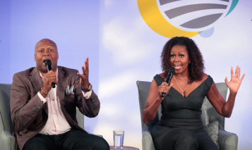INGLEWOOD, CALIFORNIA – MARCH 05: Former President Barack Obama is presented a jersey during the game between the LA Clippers and the Detroit Pistons with LA Clippers owner Steve Ballmer at Intuit Dome on March 05, 2025 in Inglewood, California. NOTE TO USER: User expressly acknowledges and agrees that, by downloading and or using this Photograph, user is consenting to the terms and conditions of the Getty Images License Agreement. (Photo by Meg Oliphant/Getty Images)