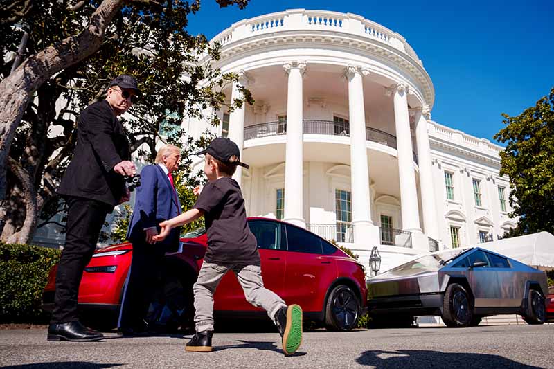 A fleet of Tesla vehicles were parked outside the White House for the event.