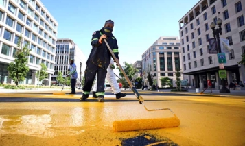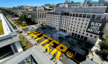 (Center L-R) The Reverend Al Sharpton, New York Mayor Bill de Blasio and his wife Chirlane McCray, paint a new Black Lives Matter mural outside of Trump Tower on Fifth Avenue on July 9, 2020 in New York City. (Photo by Angela Weiss / AFP) (Photo by ANGELA WEISS/AFP via Getty Images)