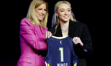 Azzi Fudd, Paige Bueckers at The WNBA Draft 2025 held at The Shed on April 14, 2025 in New York, New York. (Photo by Steve Eichner/WWD via Getty Images)