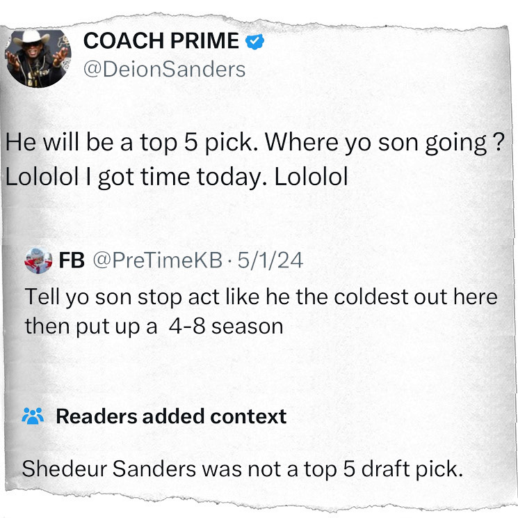 Late Thursday night, as Shedeur fell out of the first round, Deion’s 2024 prediction began to go viral on ex-Twitter.