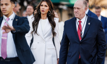 U.S. Secretary of Homeland Security (DHS) Kristi Noem, center, and Tom Homan, President Trump’s Border Czar, right, walk towards the West Wing of the White House in Washington, DC on January 29, 2025. Photo credit: Samuel Corum – Pool via CNP / MEGA