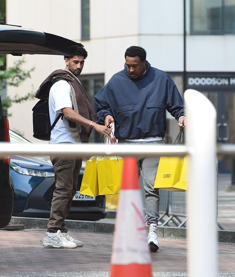 On Thursday, Brown’s bodyguard (right) was spotted shopping for his court clothes at Selfridges, a high-end department store in Manchester.