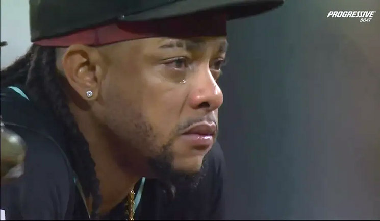 Video shows Marte break down in tears on the field while his teammates consoled him.