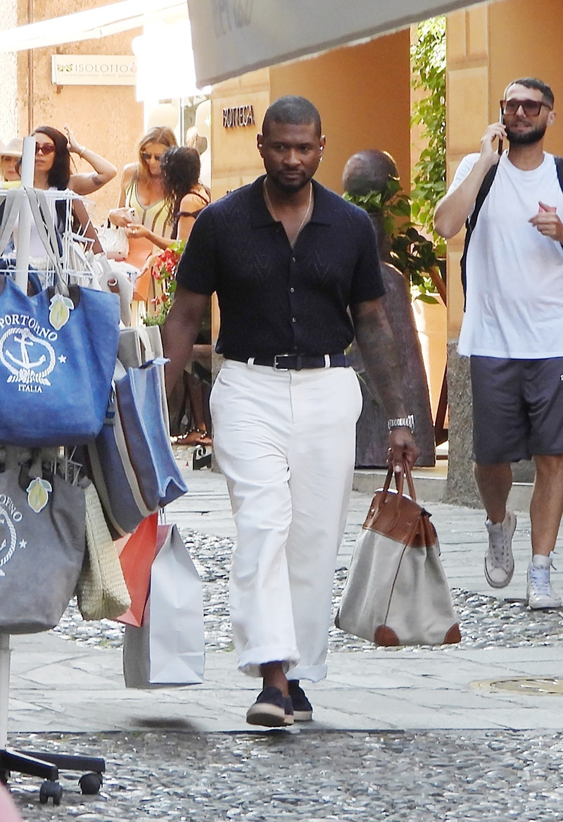Usher and Jennifer shopped ’til they dropped in the fashion district of Portofino. They were seen carrying shopping bags.