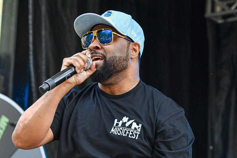 Musiq was nearly unrecognizable in a hat and dark shades. He wore blue leisure pants and a matching vest over a black T-shirt.
