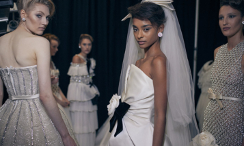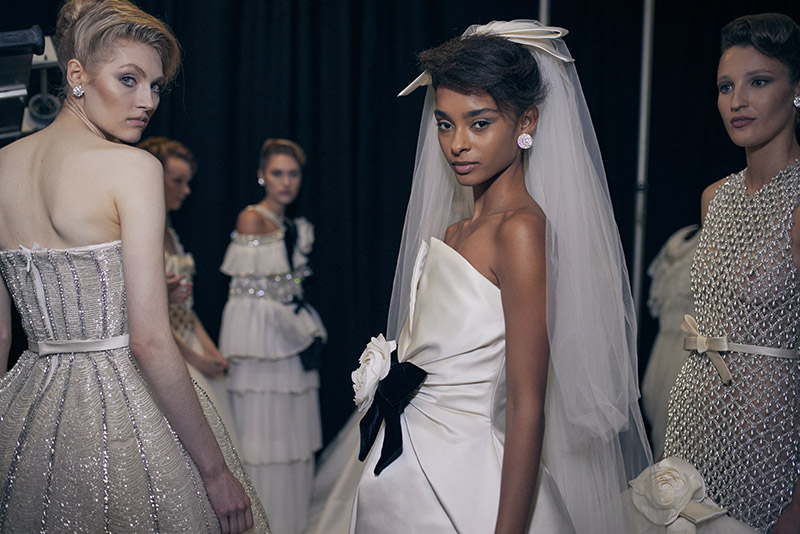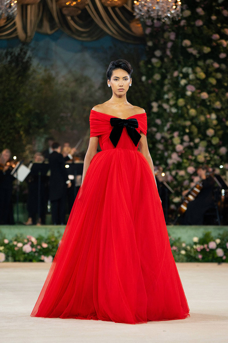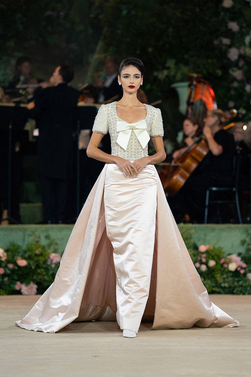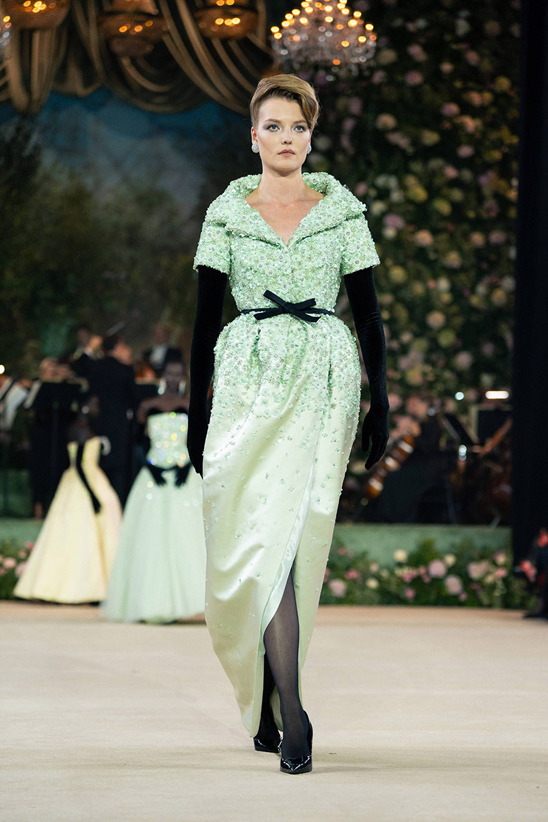 The British supermodel, 55, opened the show by leading the models down the runway wearing high fashion evening gowns and wedding dresses.