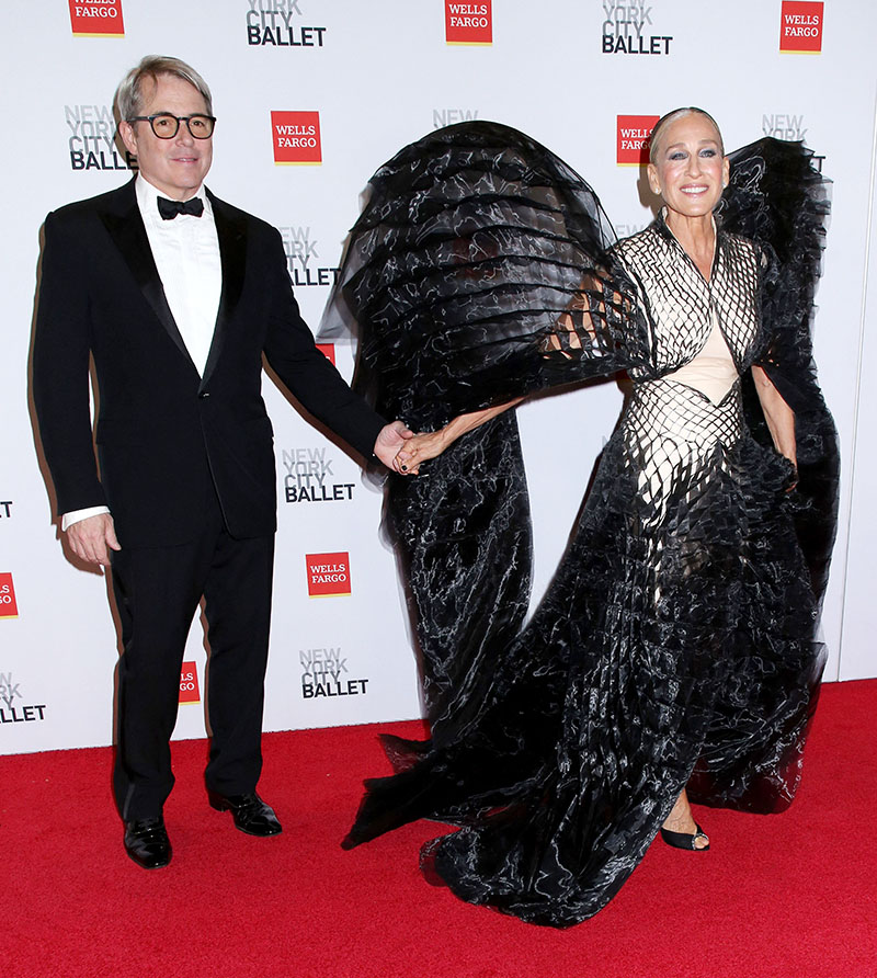 Matthew Broderick and Sarah Jessica Parker attended the New York City Ballet Fall Fashion Gala. Sarah wore an Iris van Herpen Fall 2025 Haute Couture gown that featured sculptural black lattice design and wing-like shapes on the back.