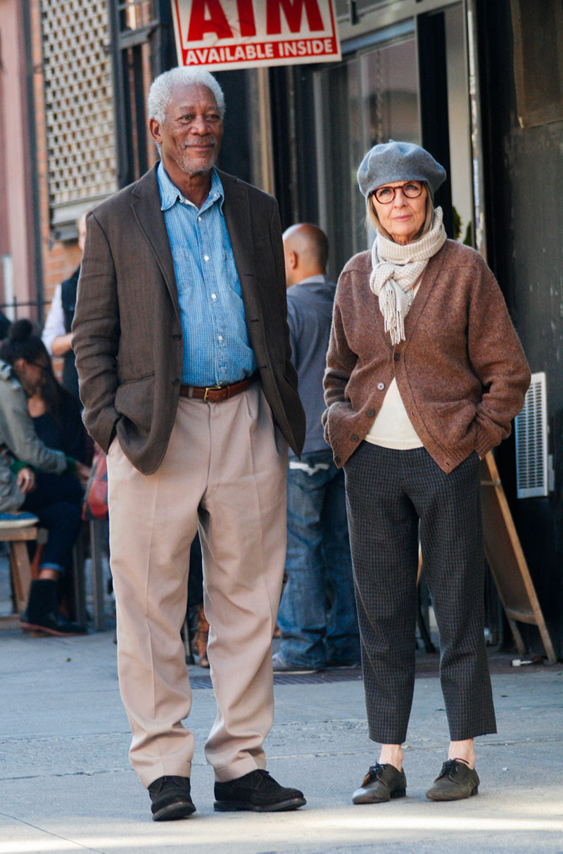 Diane Keaton has passed away today at the age of 79. She’s photographed here on set with Morgan Freeman filming her movie Life Itself in New York City in 2013. 23 Sep 2013 Photo credit: Eric Kowalsky / MEGA