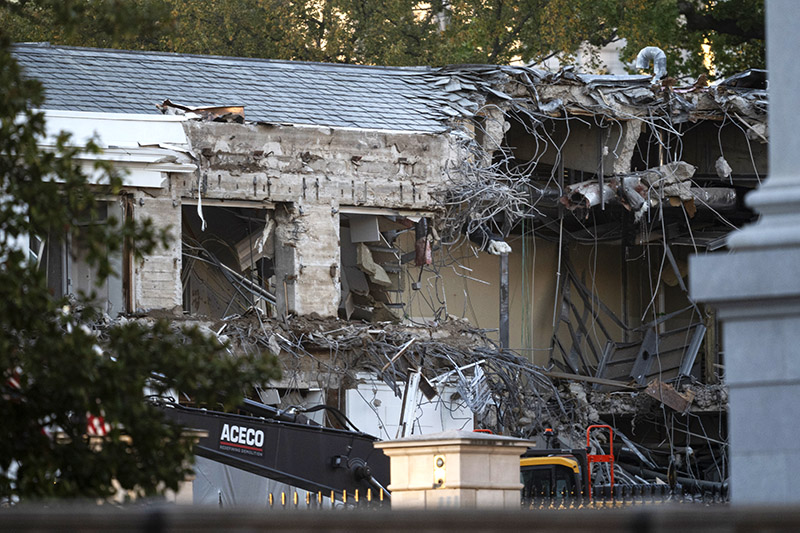 In October 2025, the Trump administration began a massive demolition project on the White House’s East Wing to make way for President Trump’s new ballroom with gilded columns and gold leaf ceilings.