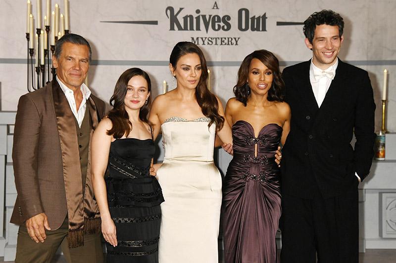 (L-R) Cast members Josh Brolin, Cailee Spaeny, Mila Kunis, Kerry Washington, and Josh O’Connor attended Netflix’s premiere of “Wake Up Dead Man: A Knives Out Mystery” on Monday in Los Angeles, CA.