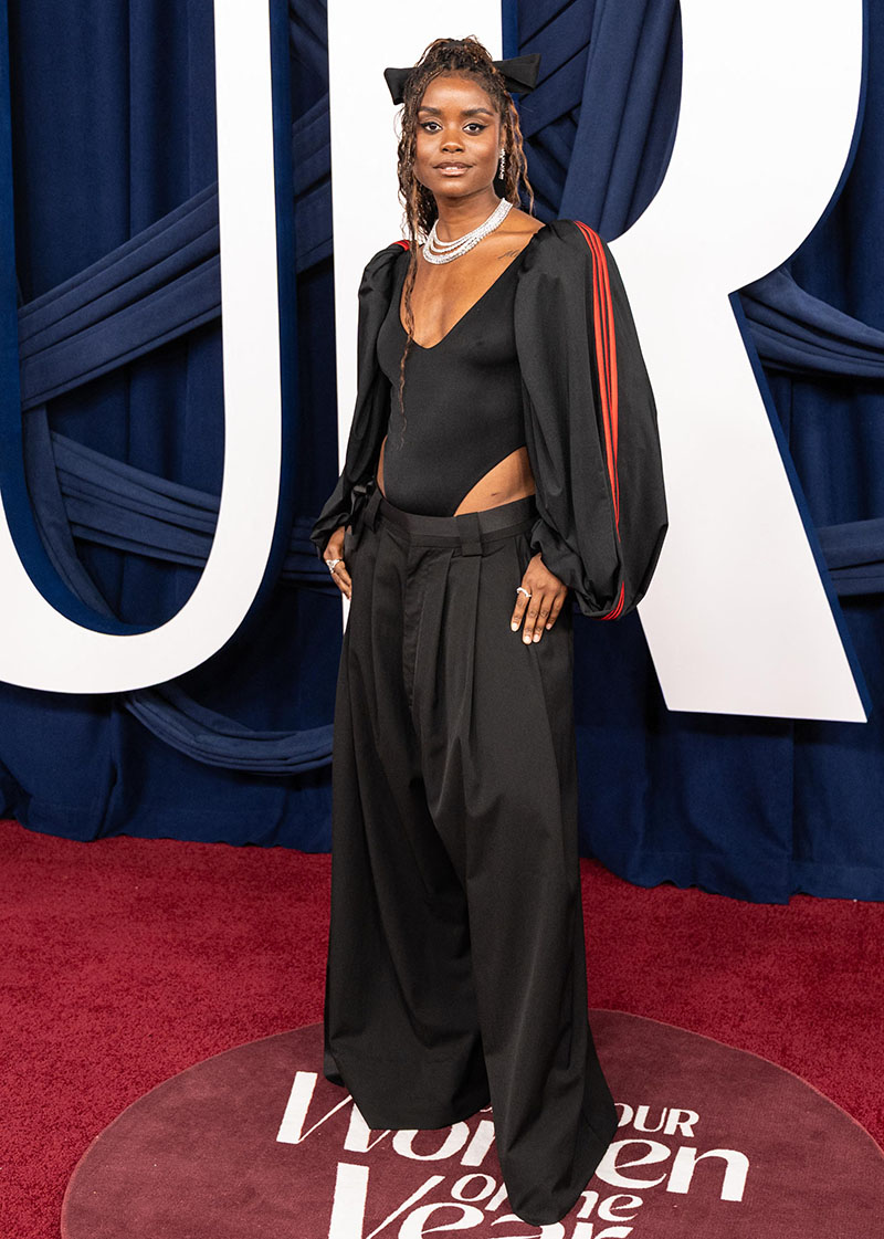 Actress and singer Denée Benton wore a Willy Chavarria x adidas Originals bodysuit with oversized trousers.