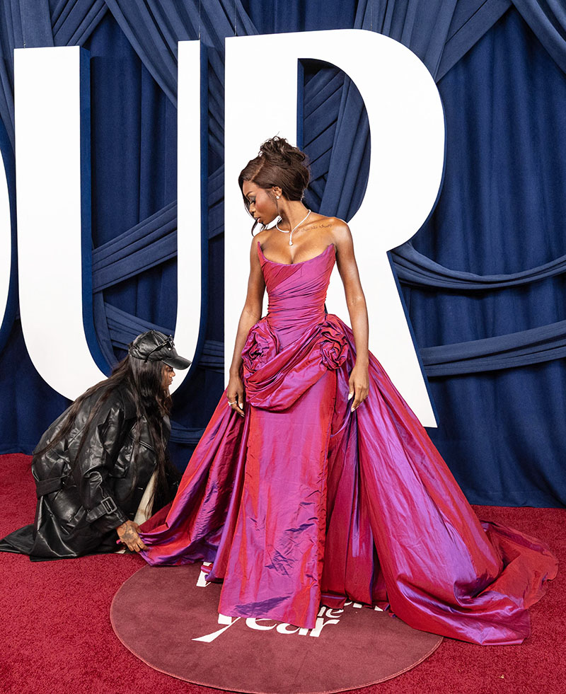 Olandria’s stylist dressed her in a shimmery taffeta strapless gown designed by Christian Siriano from his Resort 2025 collection. Jewels by Grown Brilliance and Miraki completed the look.