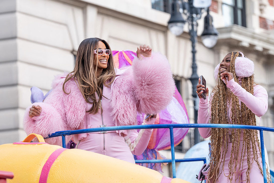 Photo of Ciara lip-syncing at Macy's Thanksgiving Day Parade