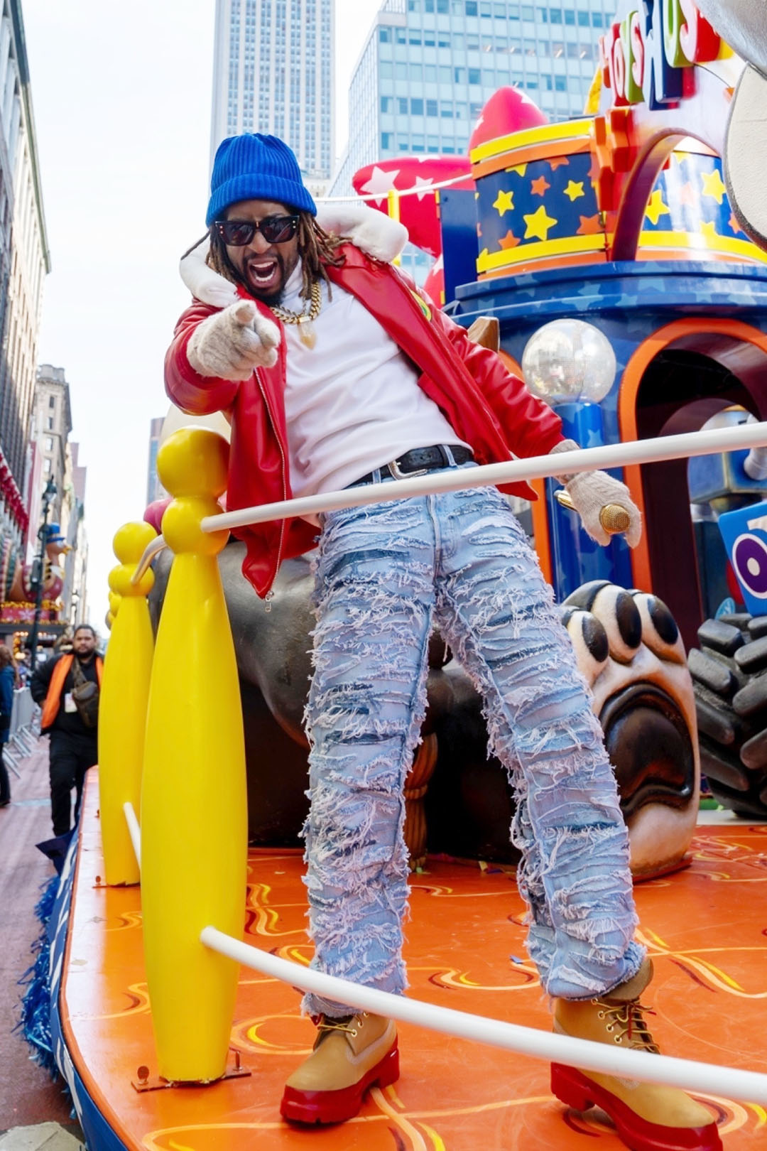 Rap producer Lil Jon performed while riding the colorful Toys “R” Us float during the 2025 Macy’s Thanksgiving Day Parade. Photo credit: GlobeTrotPix / BACKGRID