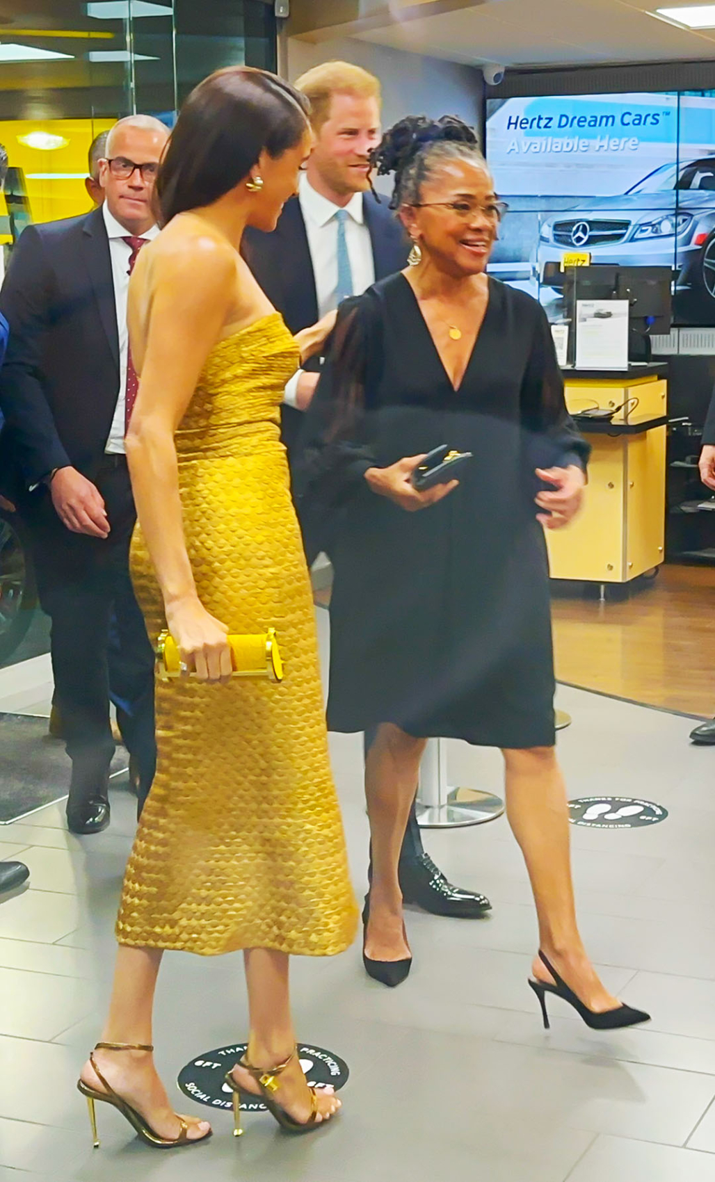 NEW YORK, NEW YORK – MAY 16: (L-R) Meghan Markle, Duchess of Sussex, Prince Harry, Duke of Sussex, and Doria Ragland are seen arriving to the “Woman Of Vision Awards” on May 16, 2023 in New York City. (Photo by Raymond Hall/GC Images)