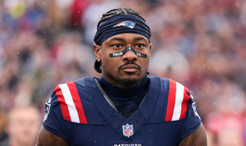 FOXBOROUGH, MASSACHUSETTS – DECEMBER 14: Stefon Diggs #8 of the New England Patriots stands on the sideline during the national anthem prior to the game against the Buffalo Bills at Gillette Stadium on December 14, 2025 in Foxborough, Massachusetts. (Photo by Kathryn Riley/Getty Images)