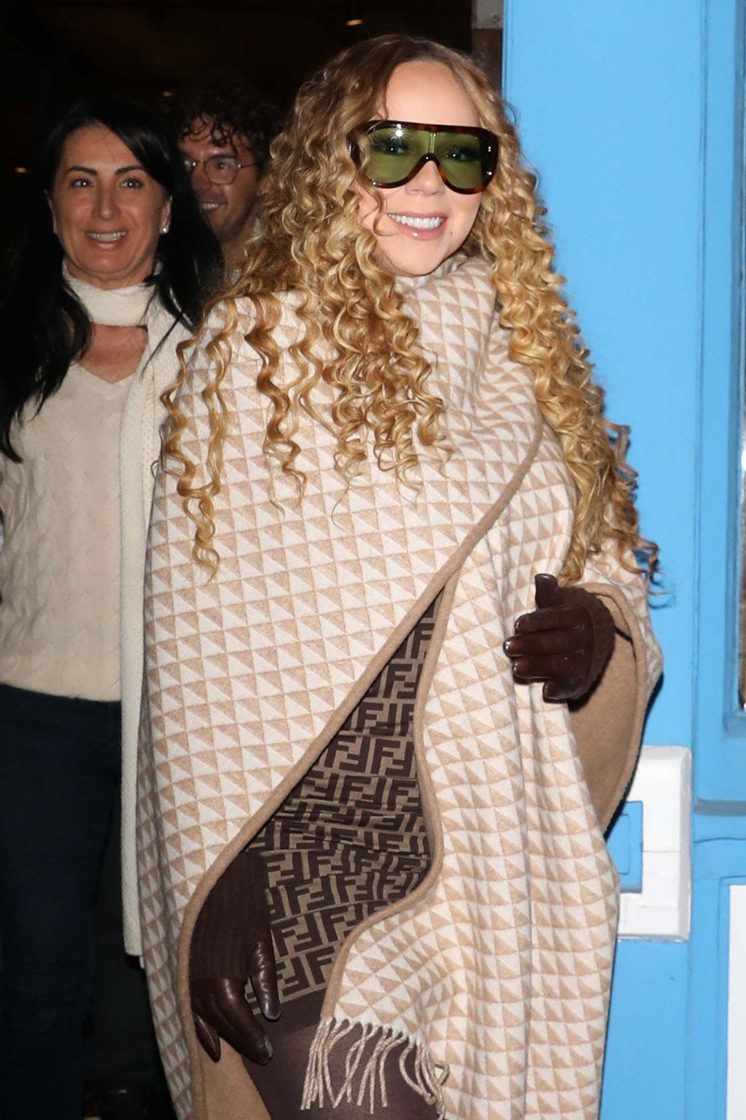 On Wednesday, Mariah wore a curve-fitting Fendi dress with leggings and brown suede boots. She also wore a warm fur coat while shopping at Prada in snowy Aspen.