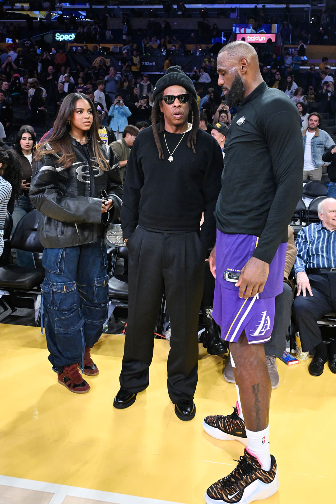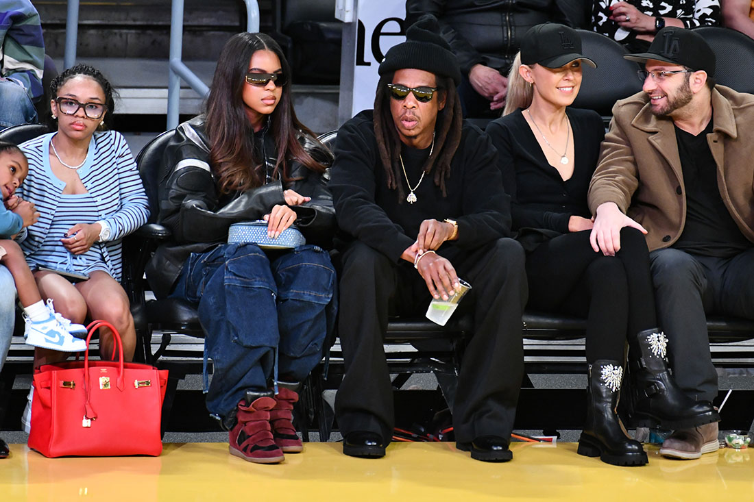 Jay-Z and his daughter Blue Ivy Carter were among the well-heeled celebrities sitting courtside at the NBA Cup Quarterfinals game between the Los Angeles Lakers and San Antonio Spurs at Crypto.com Arena in Los Angeles on Wednesday.