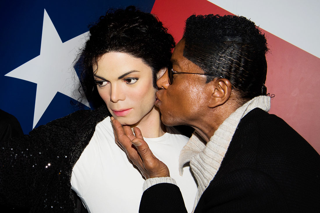 Jermaine is seen kissing a wax figure of his brother Michael at Madame Tussauds on December 30, 2016 in Berlin, Germany.