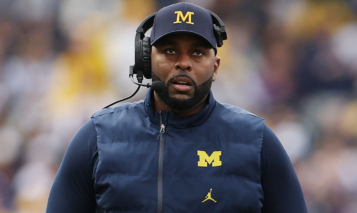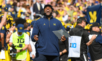 CHICAGO, ILLINOIS – NOVEMBER 15: Head coach Sherrone Moore of the Michigan Wolverines looks on against the Northwestern Wildcats during the first half at Wrigley Field on November 15, 2025 in Chicago, Illinois. (Photo by Michael Reaves/Getty Images)