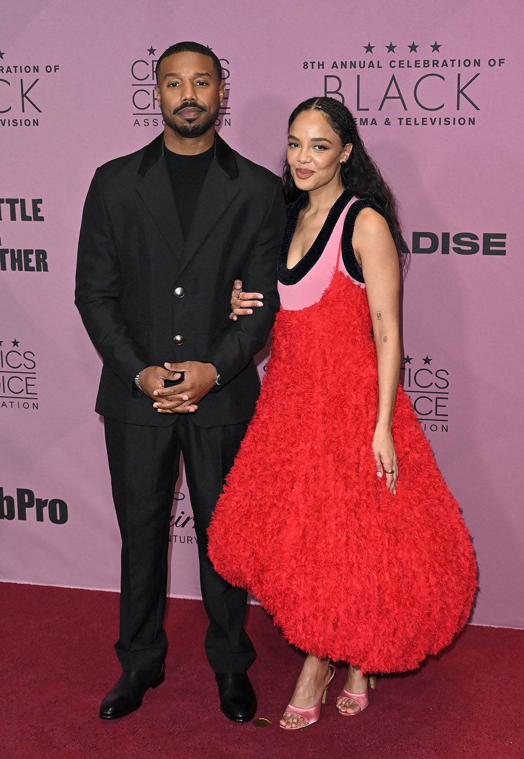 (L-R) Michael B. Jordan and Tessa Thompson pose for photos at The Critics Choice Association’s 8th Annual Celebration of Black Cinema and Television at Fairmont Century Plaza in Los Angeles on December 9, 2025. Photo credit: Lee Watt/AFF-USA.COM / MEGA