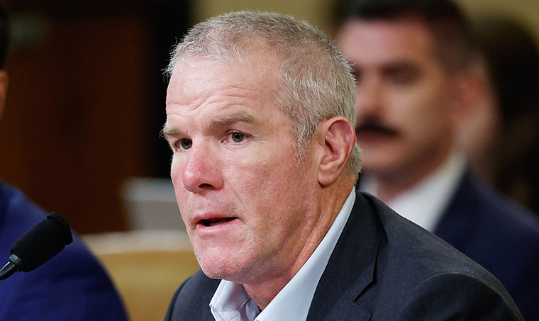 WASHINGTON, DC – SEPTEMBER 24: Former NFL quarterback Brett Favre testifies before the House Ways and Means Committee at the Longworth House Office Building on September 24, 2024 in Washington, DC. Favre testified on reforming Temporary Assistance for Needy Families (TANF) and the misuse of welfare funds. (Photo by Kevin Dietsch/Getty Images)