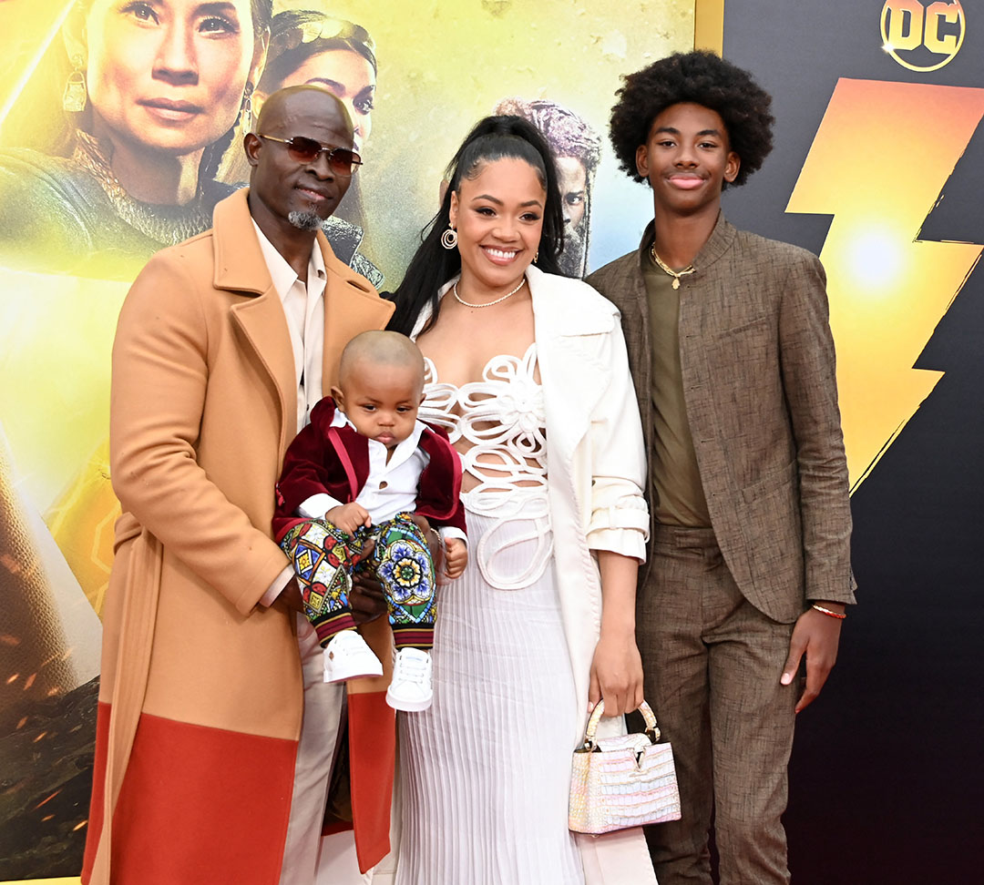Ri’Za and Djimon share son Fela and another child. They are pictured with Djimon’s son, Kenzo Hounsou (right) from a previous relationship with Kimora Lee.