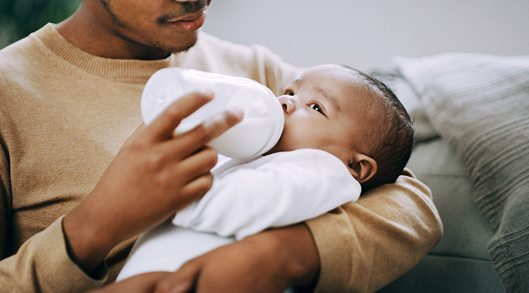 Stock photo – a baby is drinking milk formula from a bottle. Credit: E+ / Getty Images