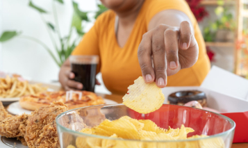 Stock photo – Overweight woman eating junk food. Photo by Boonchai Wedmakawand / Moment