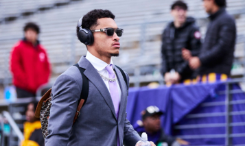 SEATTLE, WASHINGTON – NOVEMBER 29: Demond Williams Jr. #2 of the Washington Huskies arrives for the game against the Oregon Ducks at Husky Stadium on November 29, 2025 in Seattle, Washington. (Photo by Blake Dahlin/ISI Photos/ISI Photos via Getty Images)