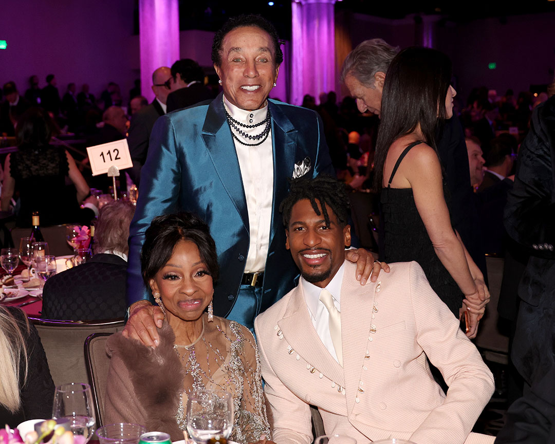 R&B icons Gladys Knight and Smokey Robinson join singer, songwriter, musician Jon Baptiste (R) at the GRAMMY Salute to Industry Icons Gala Honoring Avery Lipman & Monte Lipman in Los Angeles.