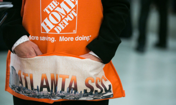 ATLANTA, GA – MARCH 08: An employee wears an apron to the meeting with House Speaker Paul Ryan during a visit to The Home Depot Store Support Center on March 8, 2018 in Atlanta, Georgia. Ryan visited the Home Depot Store Support Center to answer questions from employees during a town hall style meeting. (Photo by Jessica McGowan/Getty Images)