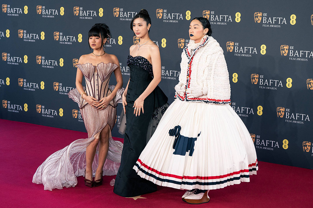 Singers Rei Ami, Audrey Nuna and EJAE, of the group K-Pop Demon Hunters, attend the BAFTA Academy Film Awards 2026 ceremony at The Royal Festival Hall in London.