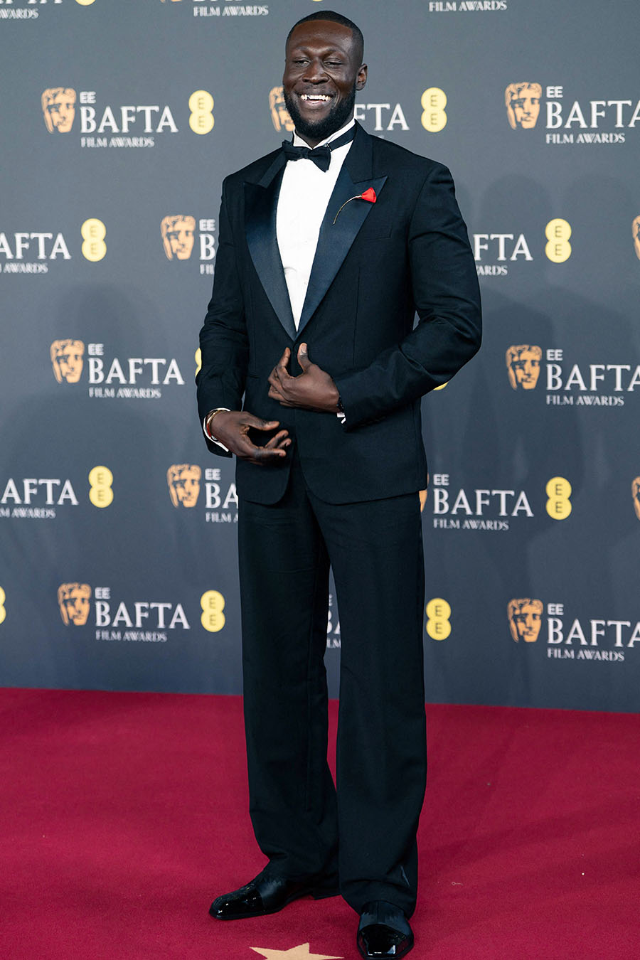 British rapper Stormzy attends the BAFTA Academy Film Awards 2026 ceremony at The Royal Festival Hall in London.
