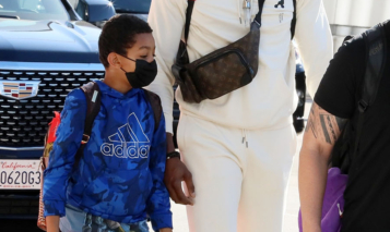 Dwight Howard is seen arriving at LAX Airport with his son on February 18, 2022. Photo credit: LionsShareNews / BACKGRID