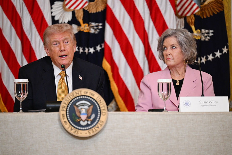 Wiles sat next to Trump in the East Room of the White House during his meeting with the board of trustees of the John F. Kennedy Center for the Performing Arts, which was renamed the Trump Kennedy Center.