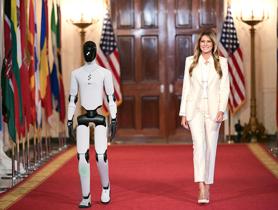 Melania Trump brought an AI-powered robot named “Figure 3” to speak at the Fostering the Future Together Global summit at the White House in Washington, DC on Wednesday, March 25.