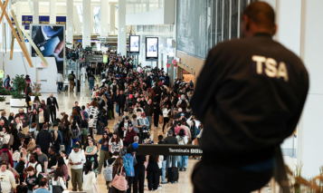 A Transportation Security Administration (TSA) agent looks on passengers queue to go through security at New York’s LaGuardia airport on March 22, 2026. Immigration agents will be deployed in US airports beginning March 23, aiming to alleviate soaring congestion at security screenings amid a weeks-long budget standoff over President Donald Trump’s mass deportation drive, officials said. Trump announced the extraordinary move in a social media post Sunday morning, sending officials racing to quickly develop a plan. (Photo by CHARLY TRIBALLEAU / AFP via Getty Images)