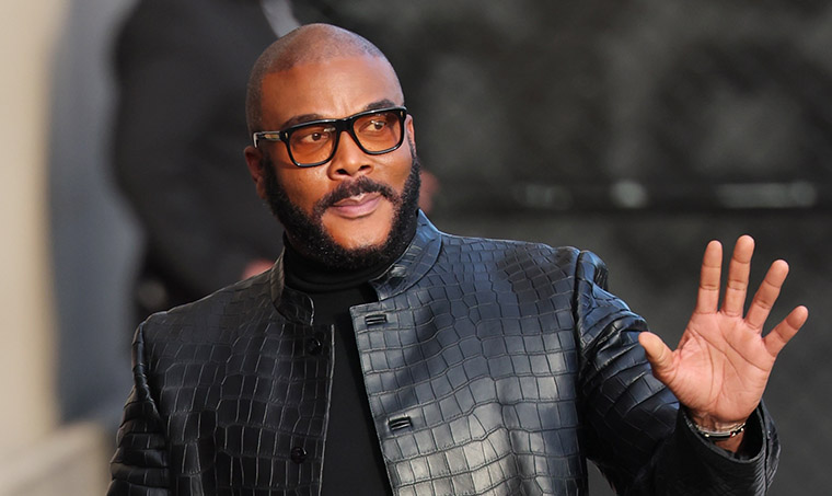 Tyler Perry waves at fans as he arrives to Jimmy Kimmel Live! studios in Los Angeles, California on February 12, 2026. Photo by PGP / BACKGRID