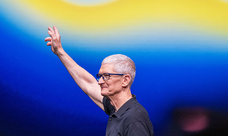 Apple CEO Tim Cook speaks during Apple’s “Awe-Dropping” event at the Steve Jobs Theater on the Apple Park campus in Cupertino, California, on September 9, 2025. Apple is set to unveil its iPhone 17 lineup on Tuesday, with enhanced artificial intelligence features expected to take center stage. (Photo by Nic Coury / AFP) (Photo by NIC COURY/AFP via Getty Images)