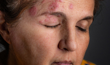 Health issues theme: Hispanic mature woman with Herpes Zoster infection on the right hand side of face and eye. Photo by Apomares / iStock / Getty Images Plus