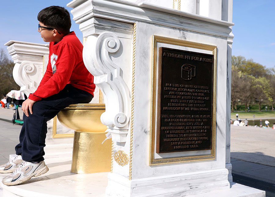 In other Trump news: a prankster installed a marble statue featuring a golden gilded toilet, titled “Throne Fit For A King,” on the National Mall in Washington, DC.