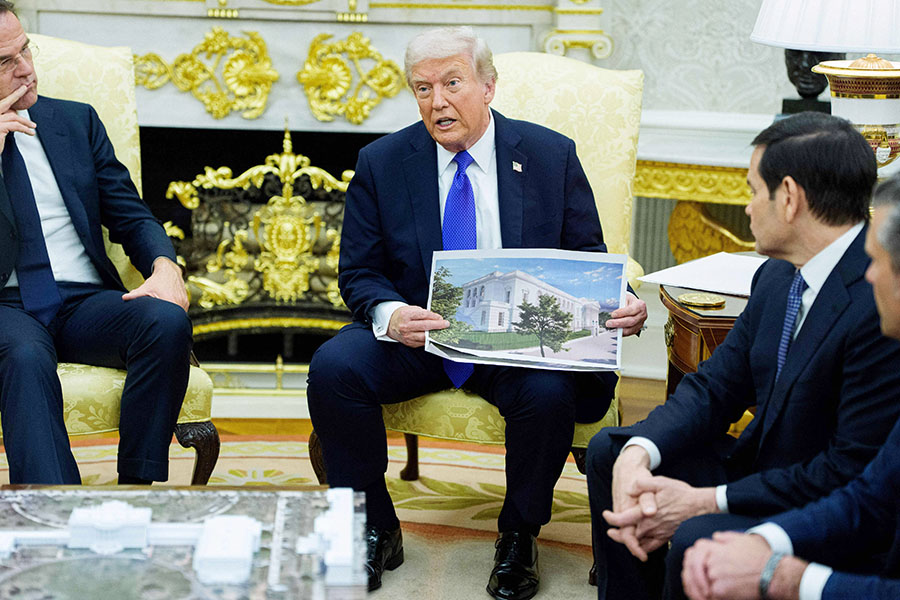After Trump’s historic reelection in 2024, he announced plans to build a 90,000sq ft ballroom on the site of the demolished East Wing.