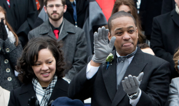RICHMOND, VA – JANUARY 13: Lieutenant Governor Justin Fairfax and his wife Cerina, left, and Governor Ralph Northam and his wife Pam watch the Inaugural parade Saturday, January 13, 2018 in Richmond, Va. (Photo by Julia Rendleman for The Washington Post via Getty Images)