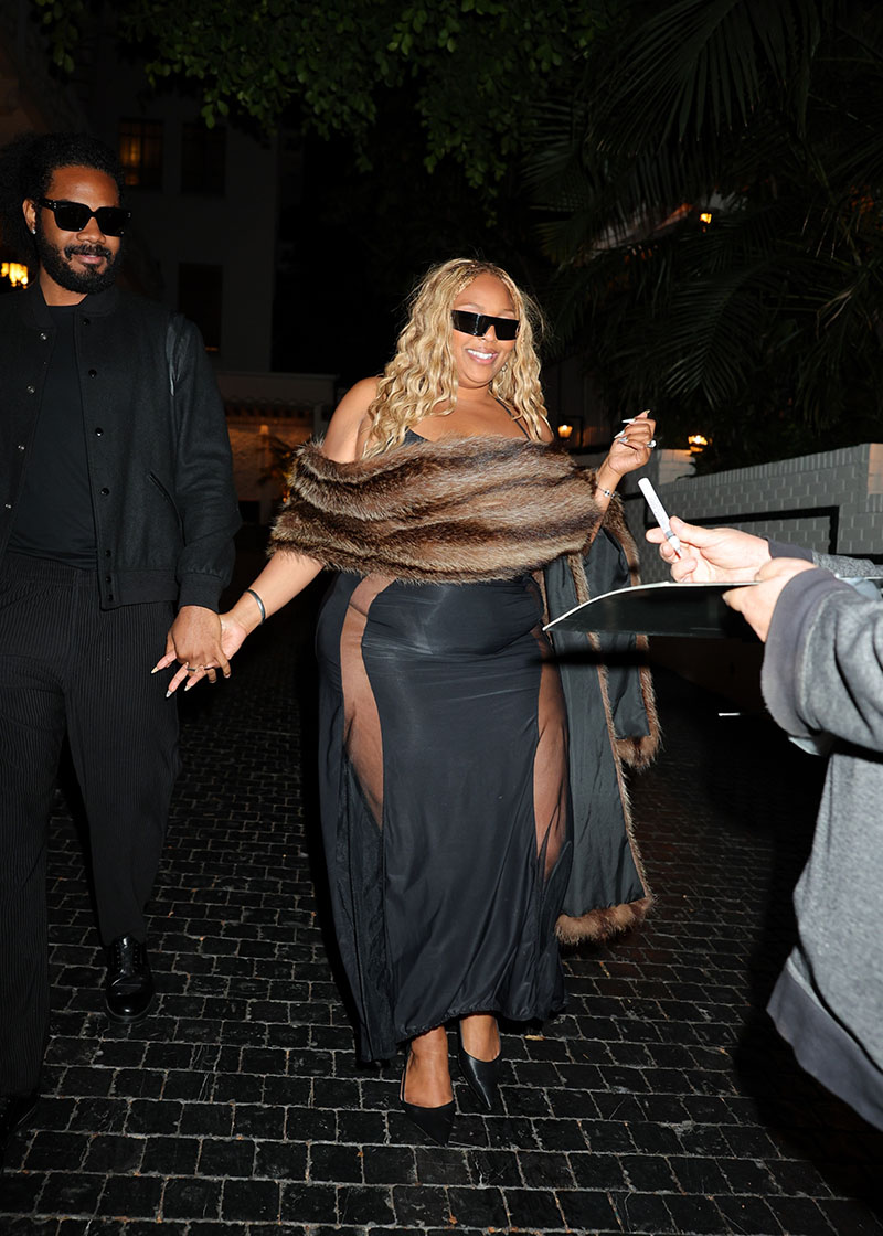 Lizzo celebrated her 38th birthday with her longtime boyfriend Myke Wright at the Chateau Marmont on Monday night, April 27. The pop singer wore a long black frock with sheer cutouts down the sides and a mink shawl.