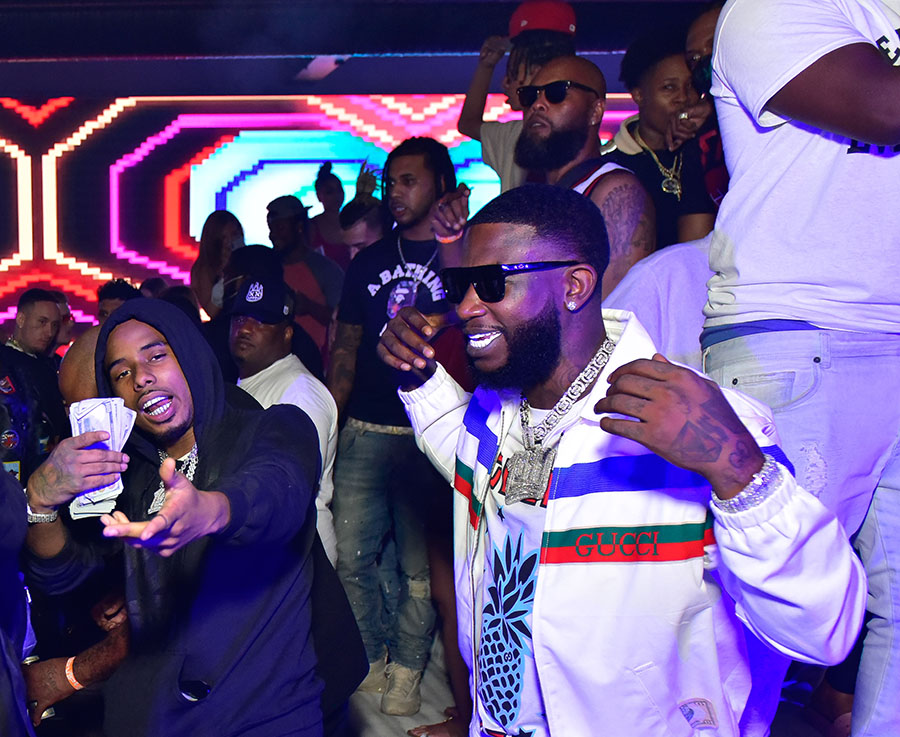 ATLANTA, GA – AUGUST 12: Rappers Pooh Shiesty and Gucci Mane attend a party at Republic Lounge on August 12, 2020 in Atlanta, Georgia.(Photo by Prince Williams/Wireimage)