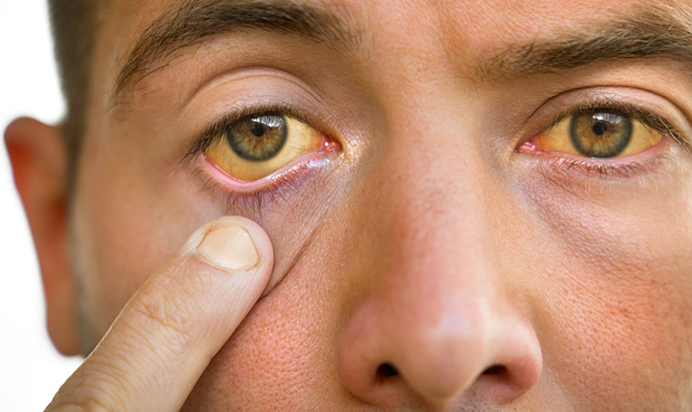 Stock photo – Young man with yellowish eyes and skin, liver disease or cancer. Symptoms of high bilirubin. Jaundice, hepatosis, hepatitis, cirrhosis, liver failure. Alcohol and nicotine harmful effects. Photo by Daria Kulkova / iStock / Getty Images Plus